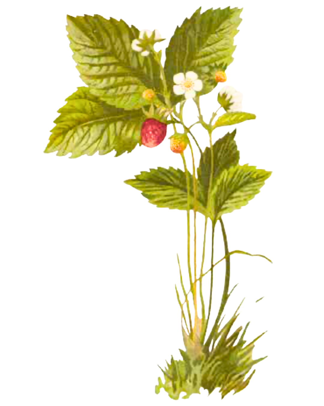 Lesní jahodník: Tato skromná bylinka obsahuje třísloviny, flavonoidy, draslík, železo, vitamín C, silice a organické kyseliny. Listy působí svíravě a protizánětlivě. Výborná je jahodníková ústní voda s dezodoračním účinkem. Čaj z listů působí jako posilující prostředek pro rekonvalescenty. Plody se v lidovém léčitelství používaly vnitřně při zánětech sliznice střev, ledvinových kamenech, chorobách ledvin a močového měchýře a při revmatismu a bolestech kloubů. Z našeho domácího ovoce má nejvyšší obsah manganu, který podporuje funkci enzymů látkové výměny. K detoxikaci organismu přispívá také draslík a třísloviny. Obsažená kyselina salicylová má protizánětlivé účinky a pomáhá při artritidě. Železo v jahodách bojuje proti chudokrevnosti a čistí krev. Červená barviva antokyany jsou bohatá na karoten a velmi účinná na ochranu pleti proti vlivu volných radikálů a ultrafialovému záření. Až 90 % vody a řada přírodních kyselin pomáhají v boji s ledvinovými a močovými kaménky a s hubnutím. Jahody mají také antibakteriální účinky; jejich konzumace se doporučuje při akné.